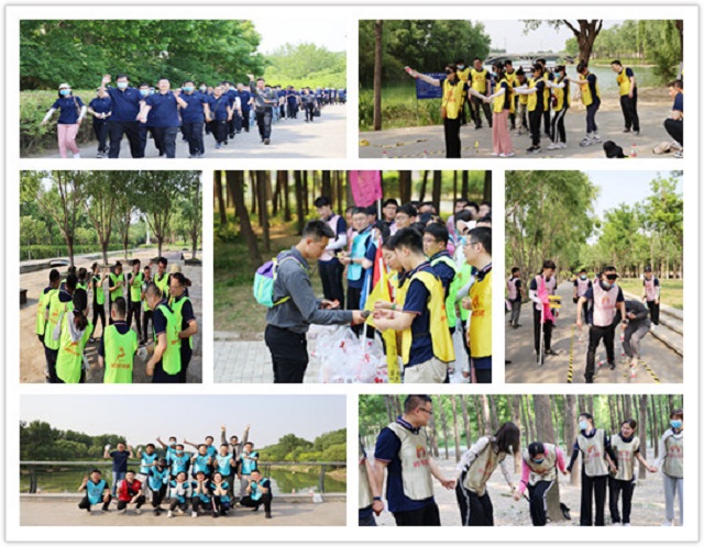 線下活動于5月20日下午在北辰濕地公園啟動,由集團工會聯(lián)合補充醫(yī)療保障團隊—泰康保險公司組織策劃,近百名職工參與。活動結(jié)合“喜迎二十大 職工健身行”健身活動主題、“點亮一顆星,護佑母親河”環(huán)保活動主題、“逐夢新征程,一起向未來”團日活動主題,采取定向拓展、團隊PK方式進行。拓展前通過“破冰”行動,各部門、權(quán)屬公司全部打破原有建制,隨機編為五隊,各隊自定隊名,自制隊旗,自擬口號,為即將到來的對抗點燃斗志。活動一聲令下,各隊整裝出發(fā),戰(zhàn)旗揮舞,斗志昂揚,五支隊伍隨即展開激烈角逐:各隊隊員頭頂烈日,戮力同心勇闖“一錘定音”“一圈到底”、“激情節(jié)拍”“心有靈犀”、“達芬奇密碼”等層層關(guān)卡,炎炎夏日不及比賽熱情,活力四射賽出濰投風(fēng)采。活動過程全員始終堅持開展環(huán)保志愿服務(wù),撿拾沿途垃圾,傳遞文明風(fēng)尚,有的黨員和志愿者提著膠袋、有的佩戴勞保手套專門撿拾、還有的負責(zé)查看,大家將部分游客遺留的煙頭、礦泉水瓶、塑料袋等垃圾進行清理,充分發(fā)揚不怕苦、不怕累、不怕臟的精神,為黃河流域生態(tài)保護貢獻力量。活動還特別設(shè)計了健康環(huán)保及一站到底等挑戰(zhàn)項目,隊員圍繞黃河流域生態(tài)保護和高質(zhì)量發(fā)展、建團100周年等知識積極搶答,達到了以賽促學(xué)、以賽促悟的目的。