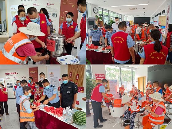 活動(dòng)現(xiàn)場(chǎng),黨員們與社區(qū)工作人員為環(huán)衛(wèi)工人提前熬制好綠豆湯,準(zhǔn)備了西瓜、礦泉水等防暑降溫物品,為環(huán)衛(wèi)工人送去貼心的關(guān)懷,感謝他們無懼酷暑,盡心盡責(zé)地為轄區(qū)的環(huán)境衛(wèi)生做出的貢獻(xiàn),并叮囑他們高溫作業(yè)時(shí),增強(qiáng)自我保護(hù)意識(shí),注意防暑降溫。環(huán)衛(wèi)工人們紛紛表示,一定克服高溫天氣堅(jiān)守崗位,一如既往地把環(huán)衛(wèi)工作做好,為創(chuàng)建全國(guó)文明城市貢獻(xiàn)自己的力量。