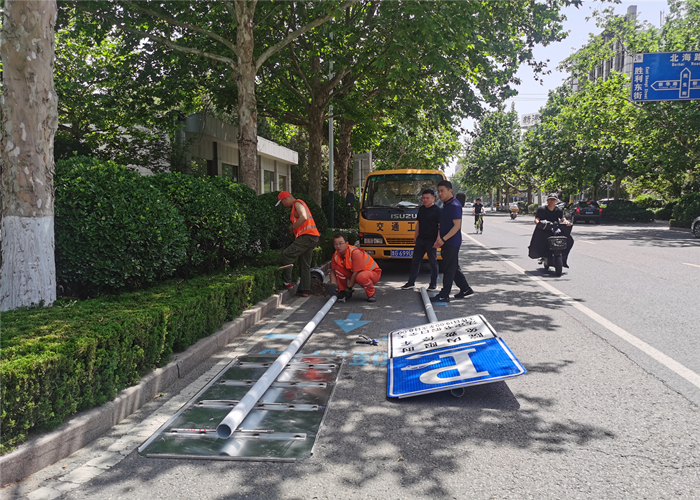 該項工作時間任務緊,工作量大,責任單位負責人一線辦公,多次到交通工程、信號、標牌施工現(xiàn)場查看作業(yè)情況,緊急調(diào)動各部門黨員、入黨積極分子等50余人到交通標牌部、交通工程部幫助生產(chǎn)施工,黨員們沖鋒在前,艱苦奮斗、甘于奉獻,充分發(fā)揮先鋒模范作用,交通標牌車間員工們天天埋頭苦干,爭分奪秒地趕制標牌。