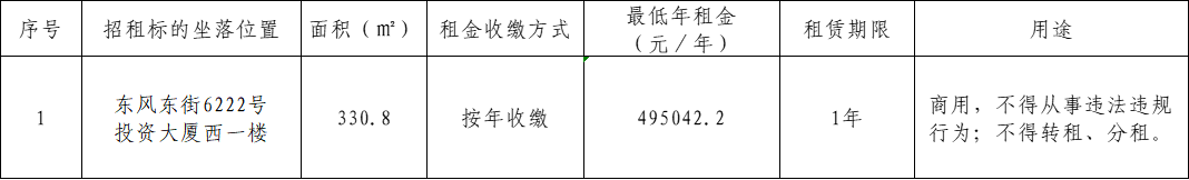 為提高國有資產(chǎn)使用效率,確保國有資產(chǎn)保值增值,按照《濰坊市國資委 濰坊市財(cái)政局關(guān)于進(jìn)一步規(guī)范市屬企業(yè)資產(chǎn)轉(zhuǎn)讓及租賃等有關(guān)事項(xiàng)的通知》《濰坊市投資集團(tuán)有限公司資產(chǎn)轉(zhuǎn)讓及租賃管理制度》相關(guān)規(guī)定,現(xiàn)面向社會(huì)對(duì)我單位管理的投資大廈部分房屋進(jìn)行公開招租: