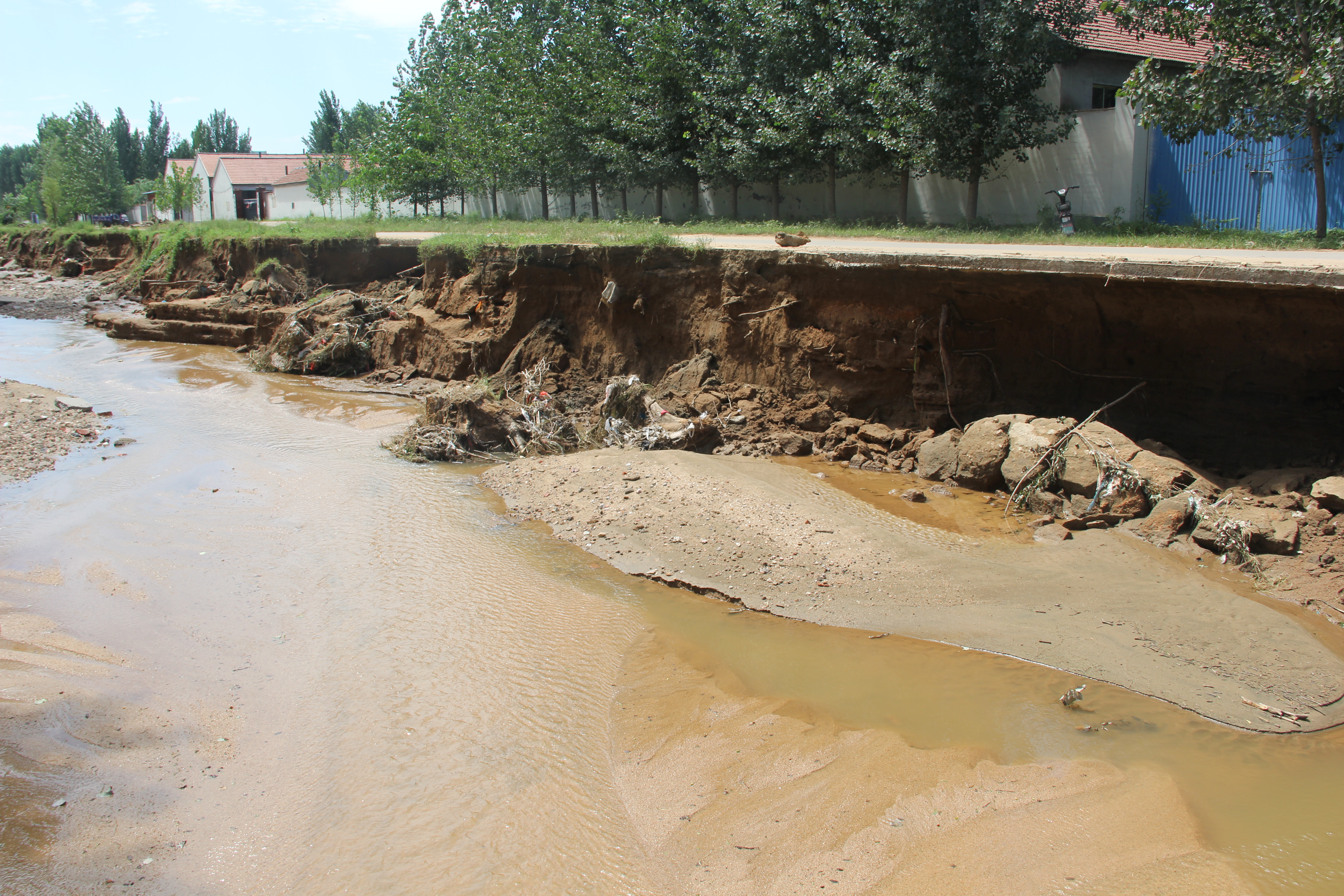 本次洪澇災(zāi)害該村共倒塌房屋6間,沖毀橋梁1座、進村公路2000余米、機耕路10余公里,受災(zāi)莊稼20余畝,直接經(jīng)濟損失逾千萬元。