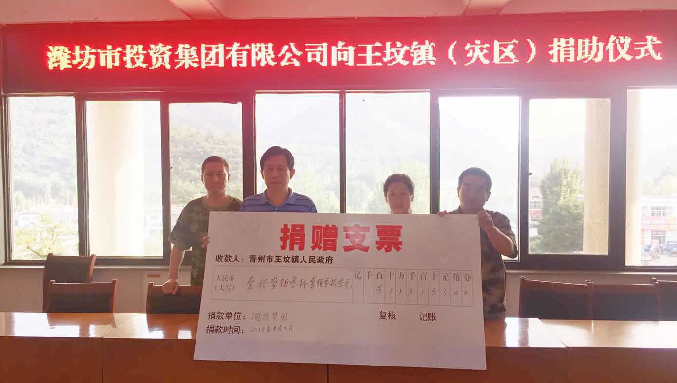 洪水無情,人間有愛。為幫助受災群眾度過難關(guān),盡快恢復群眾正常生產(chǎn)生活秩序,2018年8月29日,集團公司黨委組織開展“情系災區(qū) 奉獻愛心”抗災救災愛心捐助專項活動。集團公司領(lǐng)導班子成員帶頭捐款,全體員工紛紛解囊,短短一天時間,共募集捐款113133元,全部捐助于集團公司負責包靠的青州市王墳鎮(zhèn)澇洼村,以拳拳愛心支援抗災救災工作。